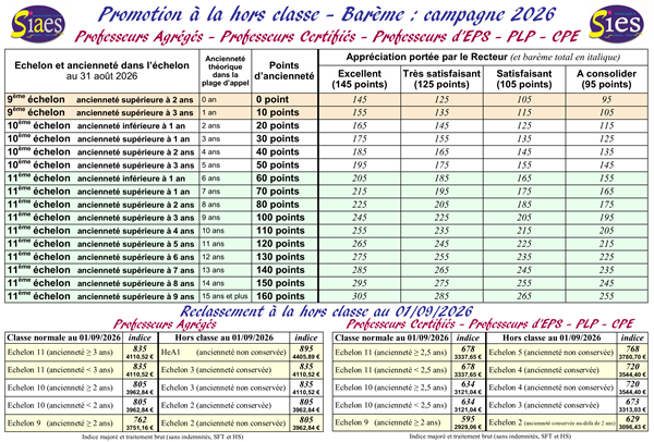 barème hors classe 2015