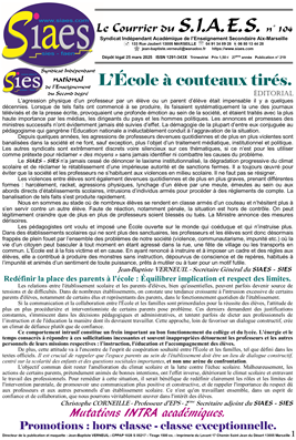 professeurs respectés ! Jean-Baptiste VERNEUIL - Secrétaire général du SIAES, Président du SIES éditorial du "Courrier